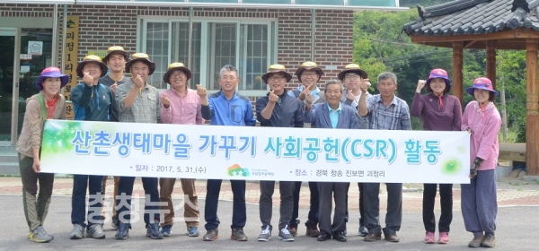산림청 한국산림복지진흥원(원장 윤영균)은 소속기관인 국립칠곡숲체원(원장 조두연)이 31일 경북 청송군 진보면 괴정리 소재 꽃돌산촌생태마을을 방문, 마을 가꾸기 행사를 벌였다고 밝혔다.