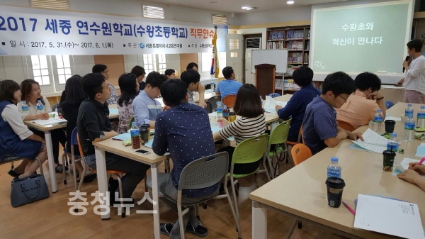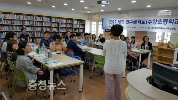 세종교육연구원은 31일부터 이틀 동안 수왕초등학교에서 세종 연수원학교를 운영했다. 사진은 지난 31일 초등교원을 대상으로 수왕초등학교에서 열린 연수 장면