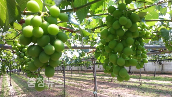 천안시와 천안포도수출단지(대표 박용준)는 지난 달 25일 농림축산검역본부로부터 북미지역 캐나다 포도 수출전문단지로 지정(승인/30농가 27ha) 받고 원예단지 지정도 완료해 하늘그린 포도의 신규 수출시장을 개척했다.