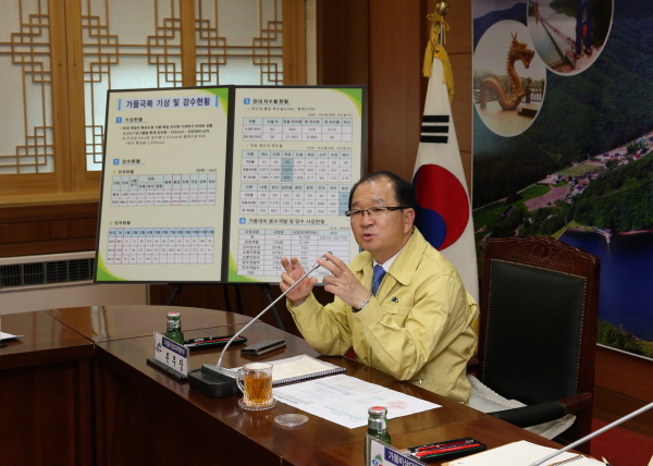 가뭄 극복 종합비상대책회의를 개최 한 이석화 군수가 대응 방안을 토론하고 있다.