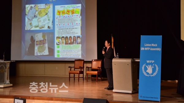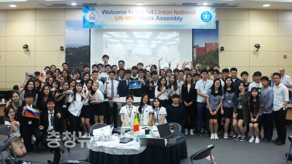 한남대학교(이덕훈 총장) 린튼글로벌비즈니스스쿨(박광일 학장)과 전국 고등학교 학생 300여 명이 참여한 제1회 전국고등학생 린튼 모의UN-WFP총회가 지난 3일 한남대학교 56주년 기념관에서 개최됐다.