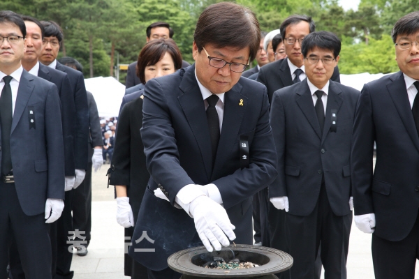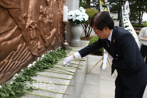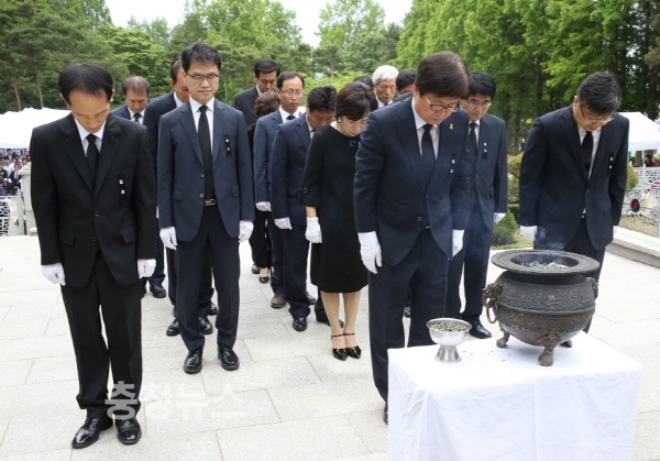 최 교육감을 비롯한 참가자들은 나라사랑 한마음으로 대한민국을 있게 하신 영령들께 묵념하고 헌화와 분향을 했다.