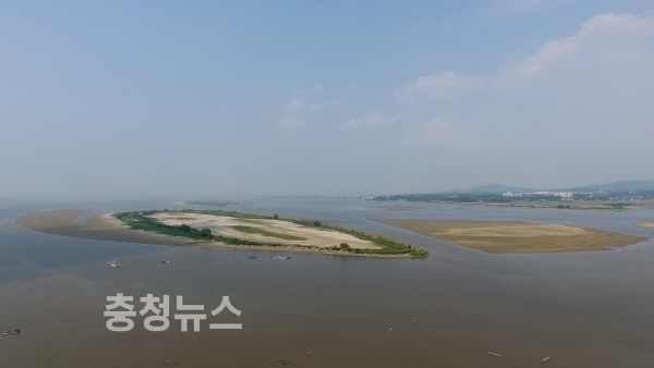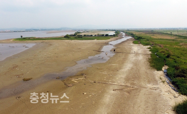 충청도 서부지역 가뭄이 계속 이어지고 있는 가운데 당진시 신평면과 우강면 일원에 농업용수를 공급하는 삽교호가 이달 2일 기준 27.8%의 저수율을 보이며 삽교호 무명섬 일원이 바닥을 드러냈다.