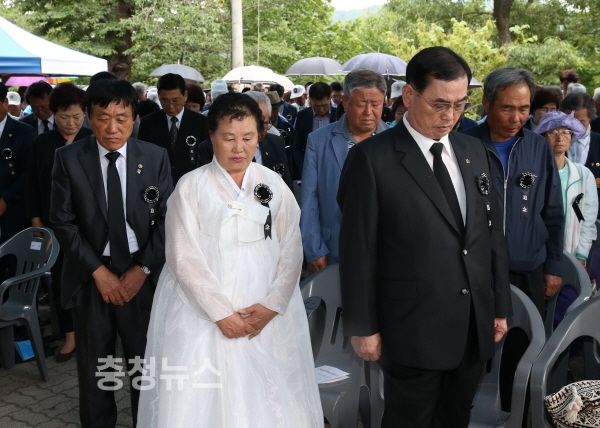 이어 헌화․분양, 헌시낭독, 봉안사 만종스님의 독경과 기독교연합회장 이기영 목사의 기도, 이석화 군수의 추념사, 조총발사, 청양고등학교 합창단의 현충일 노래 순으로 엄숙하게 진행됐다.