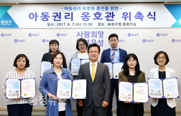대전 유성구(구청장 허태정)는 7일 구청 중회의실에서 관내 아동의 권리를 증진하고 보호하는 역할을 하게 될 ‘아동권리 옹호관’ 위촉식을 개최했다고 밝혔다.