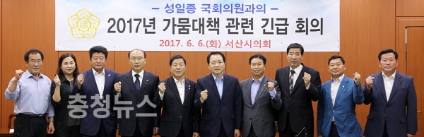 서산시의회(의장 우종재)는 6일 간담회장에서 성일종 국회의원과 가뭄극복을 위한 간담회를 열었다.