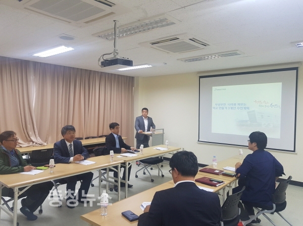 ‘무궁무진 나라꽃 피우는 학교만들기’ 태스크포스팀이 7일 천리포수목원에서 첫 회의를 진행하고 있다.