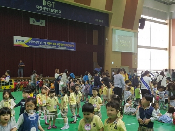 이날 오전에는 대전과학기술대학교 창대체육관 대강당에서 대전지역 유치원, 어린이집의 원아 등 약 2,000여 명을 대상으로 무료 구강건강 검진 및 치아건강 상담을 진행하였다.