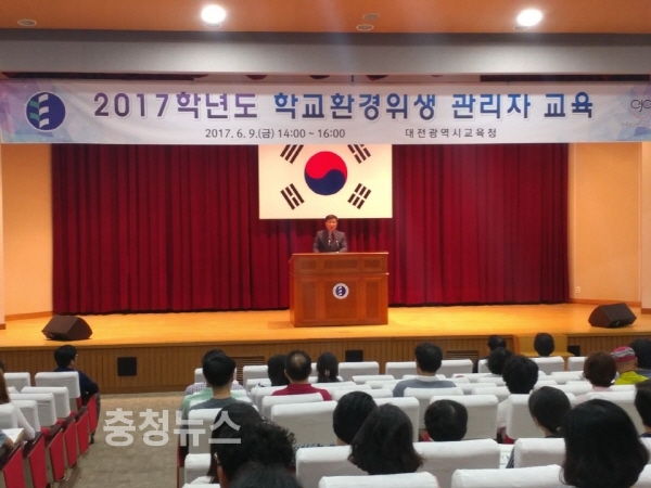 대전교육청(교육감 설동호)은 9일 대전교육과학연구원 강당에서 초․중․고등학교 및 지역교육지원청 환경위생관리자 305명을 대상으로 '학교 환경위생의 체계적 관리'를 위한 직무교육을 실시했다고 밝혔다.