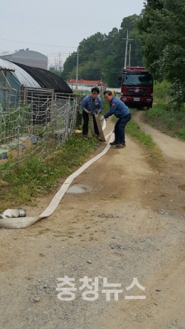당진시 대덕동 천수답에 농업용수 공급 모습