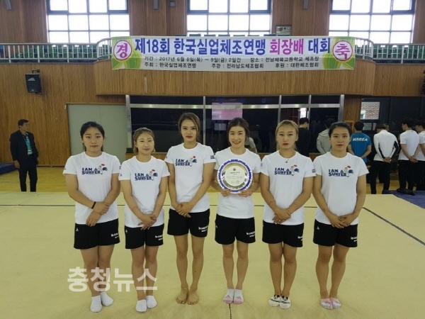충남 천안시청 체조팀이 지난 8일부터 2일간 전남 체육고등학교 체조장에서 펼쳐진 제18회 한국실업체조연맹회장배대회에서 준우승을 차지했다.
