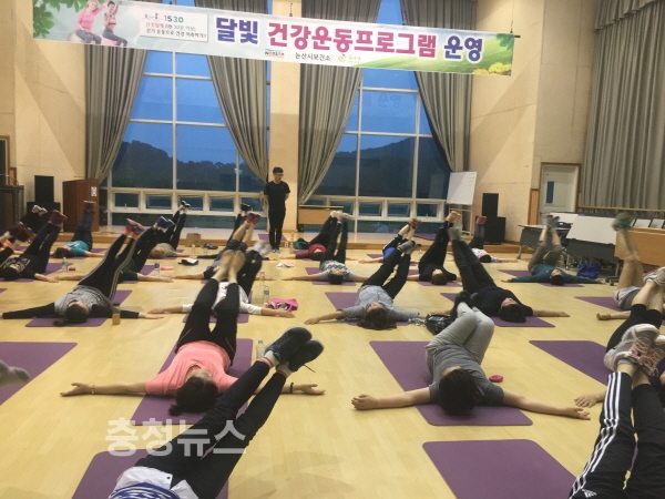 충남 논산시(시장 황명선)가 바쁜 직장인들을 위해 야간에 운영하고 있는 ‘달빛 건강운동프로그램’이 주민들에게 큰 호응을 얻고 있다.