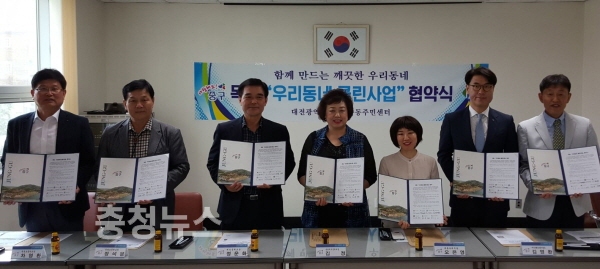 대전 중구 목동주민센터(동장 민찬기)는 12일 깨끗한 동네를 지역주민과 함께 조성하고자 목동 소재 6개 학교 및 공공기관과 ‘우리동네 클린사업 협약식’을 가졌다.