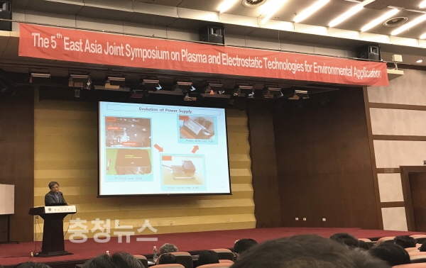 한국기계연구원 송영훈 환경시스템연구본부장이 9일 중국 대련 대련이공대에서 개최된 ‘한중일 플라즈마/정전기 기술 교류회에서 플라즈마 버너 기술에 대해 발표하고 있다