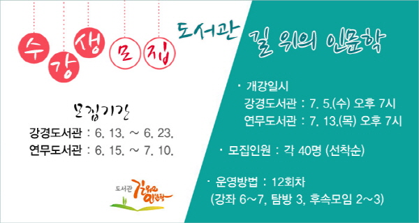 최근 몇 년 우리 사회 곳곳에 인문학 열풍이 불고 있는 가운데, 우리 동네 도서관에서 보다 쉽고 가까이 인문학을 접할 수 있는 기회가 마련된다.
