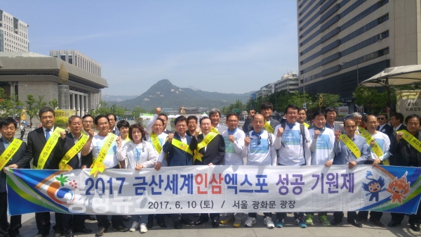 충남 금산군의회의 ‘2017금산세계인삼엑스포 성공기원 국토대장정’이 서울 광화문 광장 기원제를 끝으로 성공리에 마무리됐다.