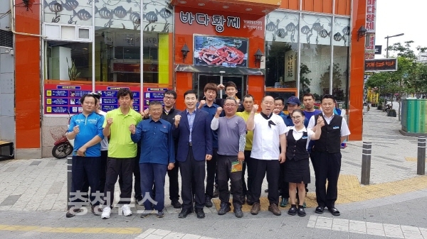 대전 중구 대흥동 소재 바다황제(대표 신환수)는 14일 무더워지는 여름을 맞아 거리 곳곳의 청결을 위해 묵묵히 노력하는 환경관리요원을 격려하기 위해 15명을 초청해 중식을 제공했다.