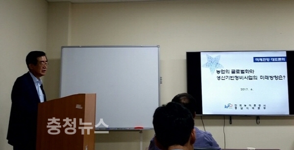 이날 김병찬 본부장은 특강에서 생산기반정비사업 추진성과를 설명하고 무인농업기반조성사업, 바이오에너지생산단지조성사업, 기술수출사업, 신간척개발사업 등 미래 농업에 대해 설명했다.