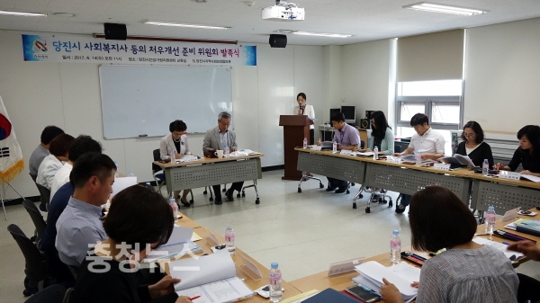 충남 당진시지역사회보장협의체가 지난 14일 당진시건강가정지원센터에서 ‘당진시 사회복지사 등의 처우개선 준비 위원회’를 발족해 당진지역 복지 종사자들의 근무환경 개선작업에 본격 돌입했다.