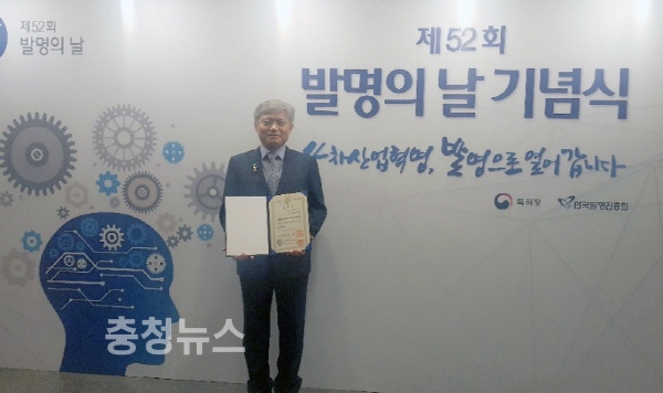 충남대 사범대학 기계.금속.공학교육과 이병욱 교수가 발명 유공자로 국무총리 표창을 받았다.