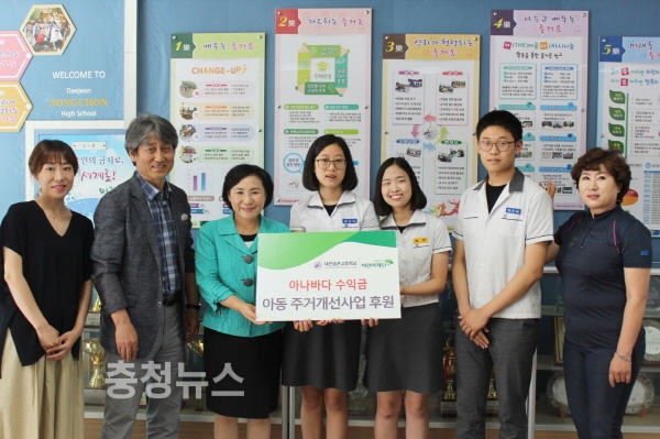 대덕구 송촌동에 위치한 대전송촌고등학교(교장 오재훈)는 15일 초록우산어린재단 대전종합사회복지관(관장 유미)에 아나바다 장터 수익금 100만원을 전달하였다.