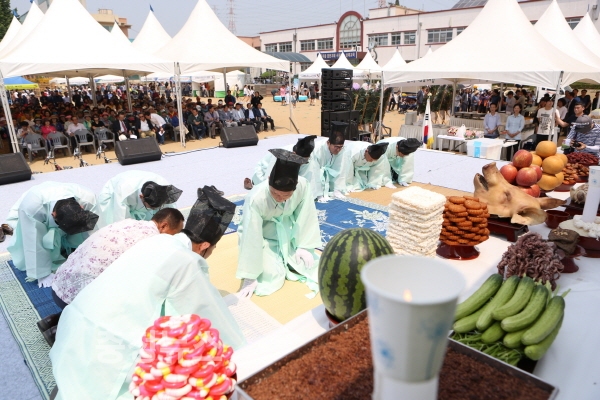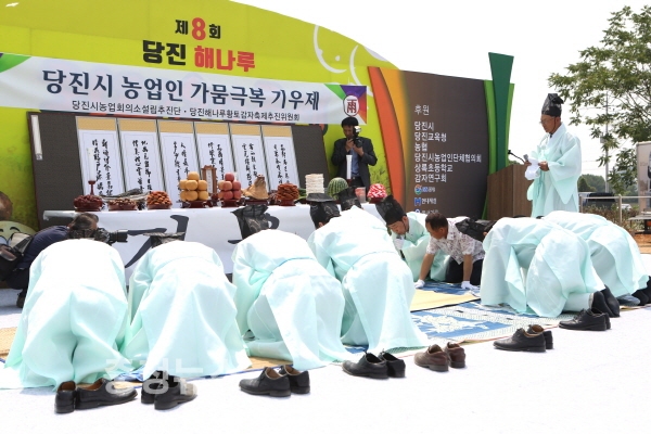 17일 당진시 송악읍 상록초등학교 일원에서 열린 제8회 당진 해나루 황토감자 축제가 시민과 관광객 등 1만 여명이 참여한 가운데 비를 염원하는 기우제 및 감자수확 체험을 실시했다.