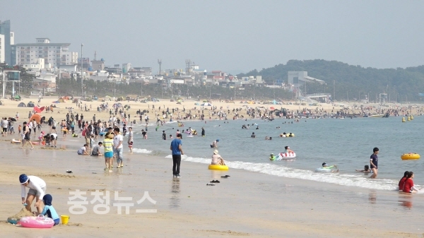 지난 17일 문을 연 대천해수욕장 첫 주말 모습