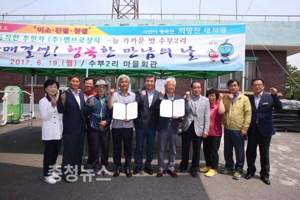 충남 보령시는 19일 오전 웅천읍 수부2리 마을회관에서 ㈜엠브로상사와 수부2리 마을간 자매결연식을 가졌다.
