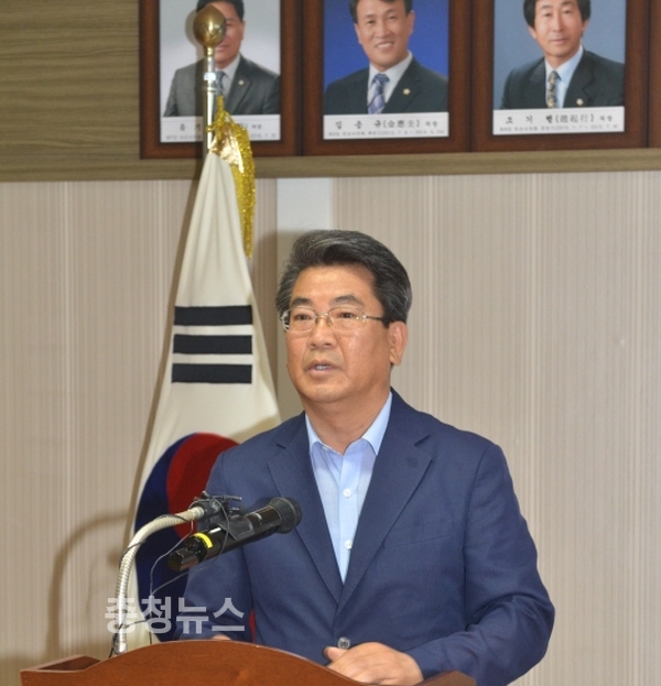오안영 아산시의회 의장은 19일 의장실에서 더불어민주당 탈당 기자회견을 갖고 "그동안 수업이 요구되었던 정당공천제 폐지 등 개혁의 요청을 위해 탈당한다"고 밝혔다.