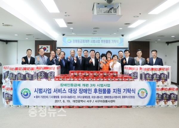 대전 서구(구청장 장종태)는 19일 구청 다목적실에서 6개 단체로부터 장애인 세대 후원물품(230만 원 상당)을 기탁받았다고 밝혔다.