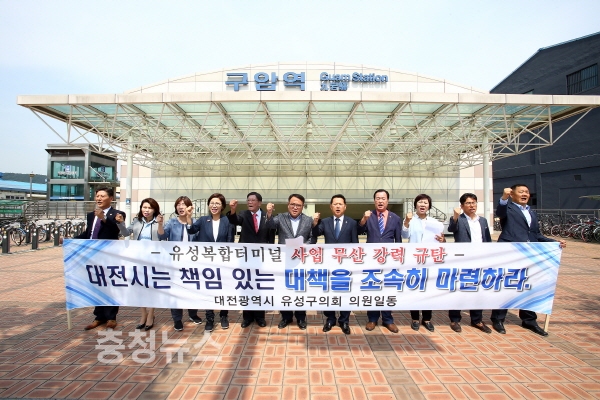 이어 “35만 유성구민을 대변하는 우리 유성구의회는 유성구민의 숙원사업이었던 유성복합터미널 조성 사업이 무산된데 대해 안타까운 마음을 금할 길이 없다”며
