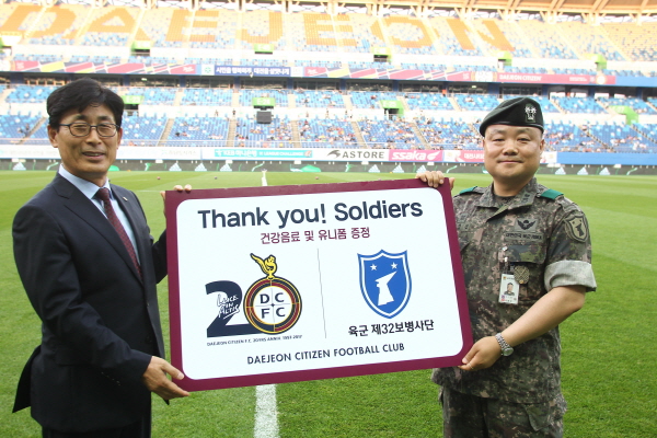 특히 K리그 최초로 대전월드컵경기장을 찾은 삼군 마스코트 호국이, 해돌이, 하늘이와 태극기 그리기 부스, 위장크림체험 부스는 어린이 관람객들에게 큰 호응을 얻었다.