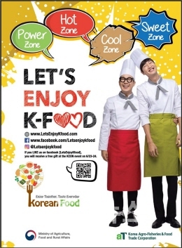 농식품부와 aT는 이러한 추세에 맞추어 이번 행사는 K-Pop 대표 콘서트인 K-Con과 연계하여 이곳을 찾을 5만여 명의 젊은이들을 대상으로 한국식품을 ‘Hot’, ‘Cool’, ‘Power’, ‘Sweet’ zone으로 나누고, 떡볶이와 고추장, 라면, 음료, 홍삼, 스낵 등을 홍보할 계획이다.
