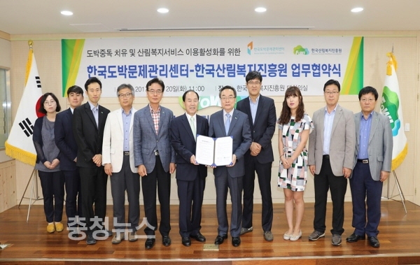 이번 협약은 산림복지서비스를 통해 도박중독자 및 가족의 치유와 회복을 돕기 위해 마련됐다.
