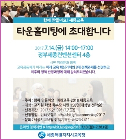 세종시교육청(교육감 최교진)이 오는 7월 14일, 정부세종컨벤션센터에서 세종 미래교육 정책 수립을 위한 타운홀미팅 행사를 실시한다.