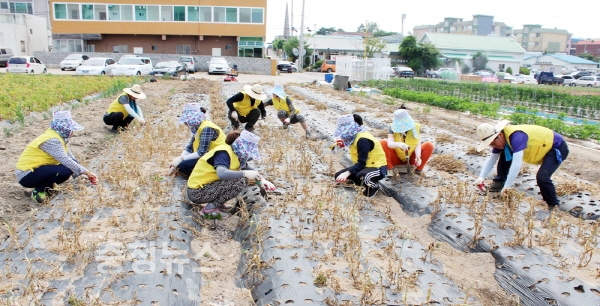 감자, 양파, 마늘 등의 채소 수확과 과수 적과작업에 구슬땀