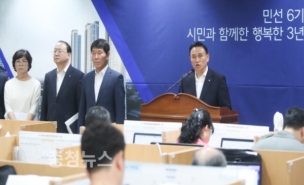 구본영 시장은 21일 민선 6기 3주년을 맞아 기자회견을 열고 ‘민선 6기 3년 시정’에 대한 성과와 앞으로의 시정운영 계획을 밝혔다.