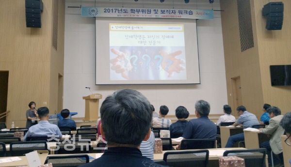 충남대는 20-21일 오덕성 총장을 비롯한 학무위원 및 본부 보직자 전체를 대상으로 한 워크숍에서 장애인식 개선 교육을 실시했다.