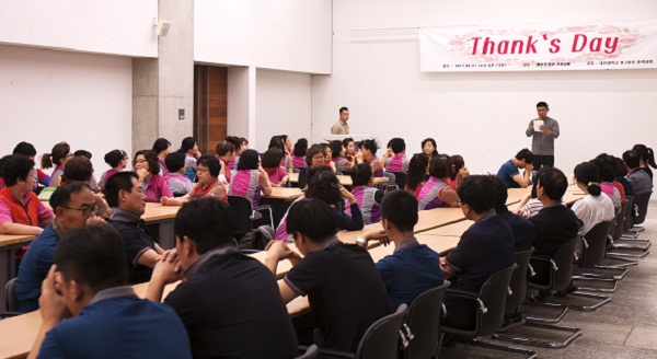 대전대 ‘동고동락’ 31대 총학생회는 21일 대학 혜화문화관 컨벤션홀에서 환경미화원 및 시설 관리직원 등 약 120명을 초청해 ‘Thank’s Day’ 행사를 개최했다.