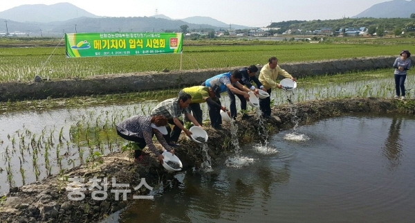 ‘친환경 논 생태복원 사업’ 메기 입식 시연회