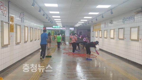 대전 중구(구청장 박용갑)는 22일 쾌적한 도시환경 조성을 위해 우리동네 클린사업의 일환으로 세이백화점 앞 지하보도 등 9개 도로시설물에 대한 점검·정비를 실시했다.