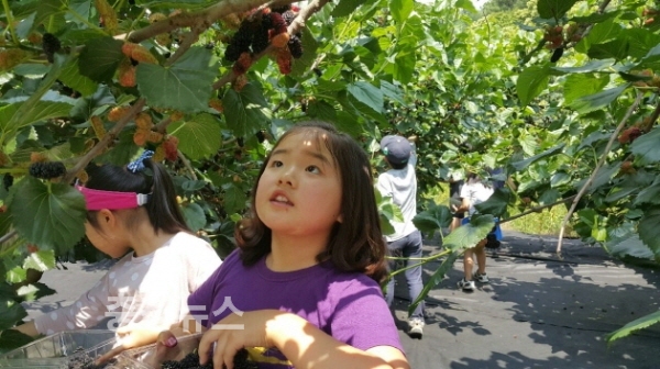 청양군, 기능성 블랙푸드 ‘오디’ 수확체험 한창