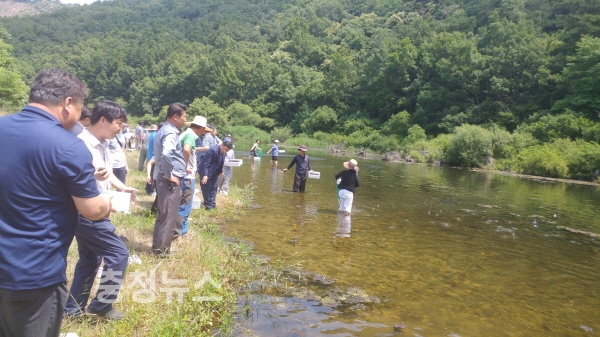사업비 4천만원 투입해 적합여부 확인된 참게, 다슬기 종묘 방류