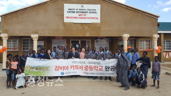 대전교육청(교육감 설동호)는 지난 22일 이용균 부교육감을 비롯한 방문단이 대전교육청의 후원으로 건립된 아프라카 잠비아의 카토바중등학교 완공식에 참석했다고 23일 밝혔다.