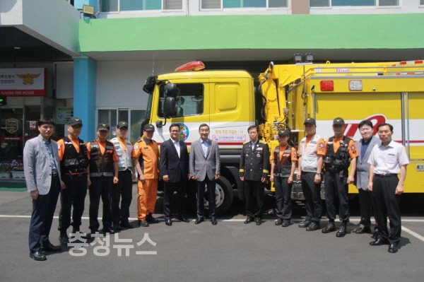 소방장비 지원 사업비는 2억 5천만원이며 김광신 공제사업본부장이 무상지원 했고 배연차량 구입은 대전시가 결정한다.