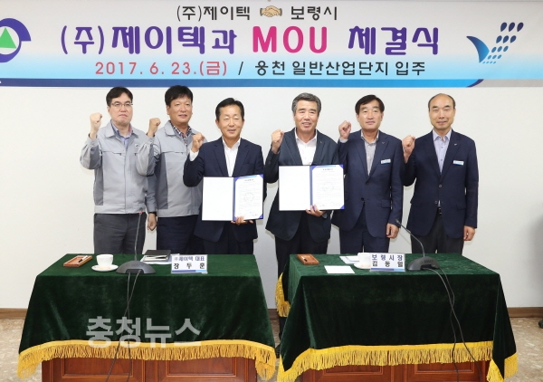 보령시가 23일 오후 시청 상황실에서 기체 여과기 제조업체인 ㈜제이텍과 MOU(투자양해각서)를 체결했다.