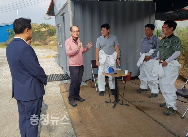 유찬형 본부장은 주말을 이용한 양일간의 방역활동이 AI종식의 분수령으로 보고 25일 충남 금산군 금산읍 신대리 일대 방역초소를 방문하여 무더위 속에서 방역장비를 착용하고 양계장 및 차량소독에 최선을 다하는 방역 담당자들을 격려하고 마지막까지 최선을 다해 줄 것을 당부했다.