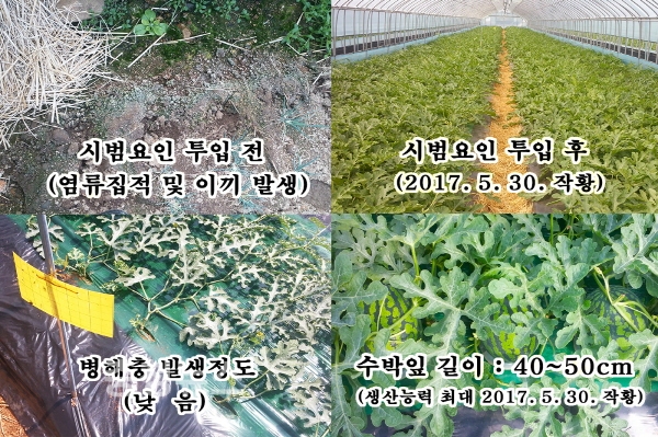 원예특작기술팀은 “시설 수박 연작장해의 문제점을 토양양분 과잉으로 분석하고 토양 건전화를 위한 종합적 토양환경개선 기술을 투입하였다”고 전했다.