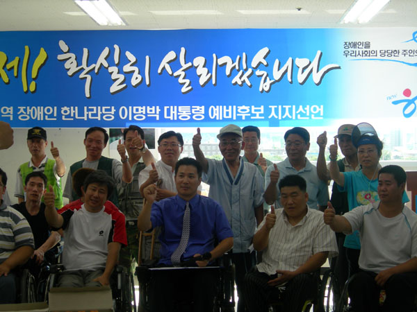 이후에 저희들은 여러 장애인들과 더불어 이명박 후보의 당선을 위하여 적극적 실천을 전개할 것입니다.