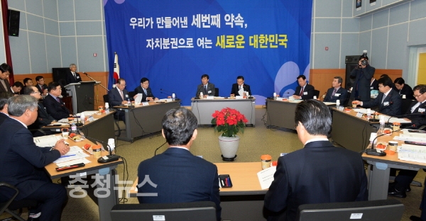 안희정 지사는 “문재인 대통령의 연방제 수준의 분권국가 선언을 지지한다”며 “문 대통령의 제2국무회의 제안에 기초해 최근 15개 시·군 시장·군수님들을 모시고 ‘충남판 제2국무회의’ 상설·정례화를 제안했고, 동의를 얻었다”고 말했다.
